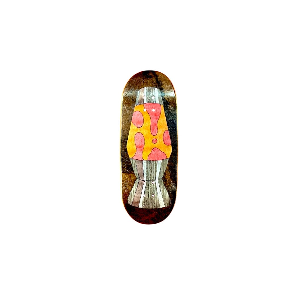 36mm x 97mm Eggsicle “Lava Lamp Split”. Fully hand cut split ply, with a hand burned and painted top ply. Collins Wood decks currently have a wheelbase of 59mm. Concave 1.5mm, and a kick degree of about 22.5 with an ever so slight raise in the nose. Each deck comes with foam tape, stickers, and good luck charm.