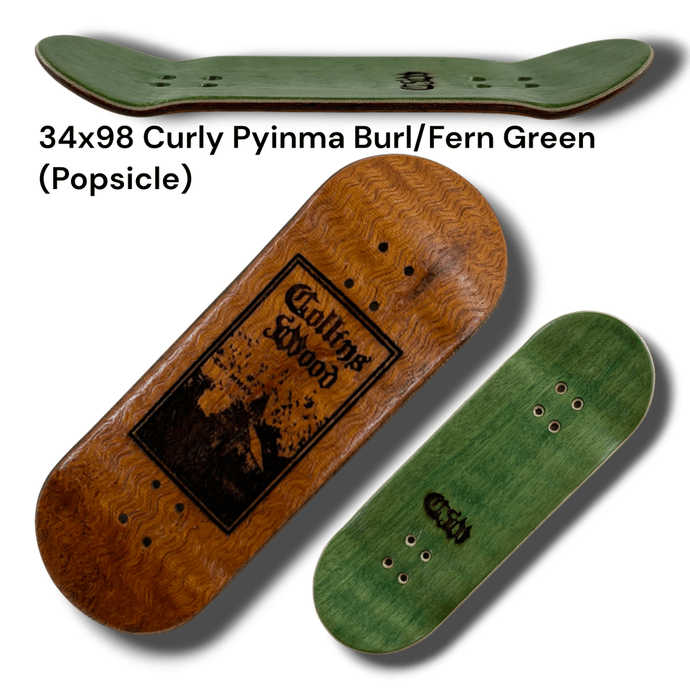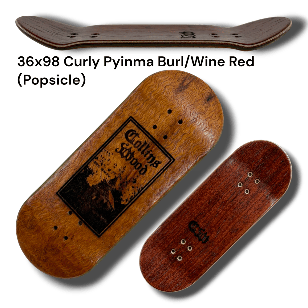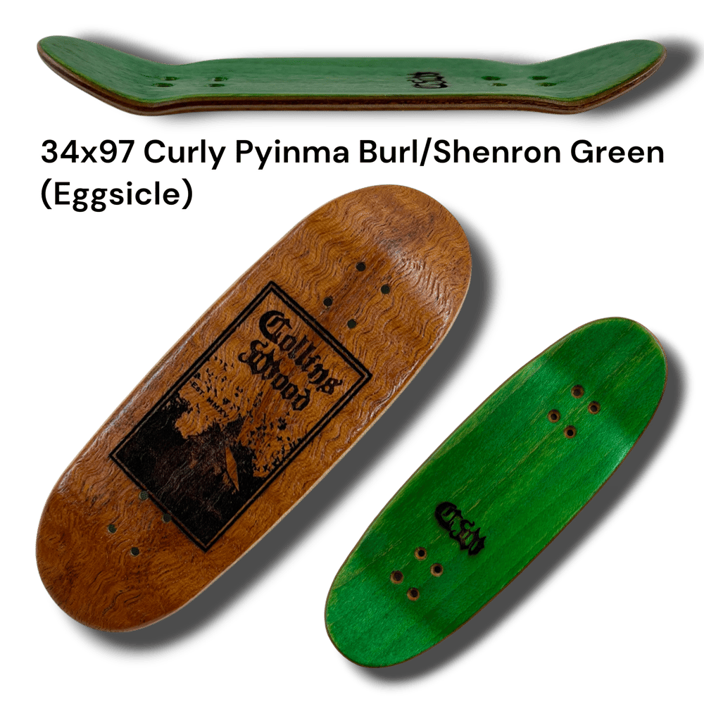 Introducing the first ever Collins Wood laser engraved "Southern Gothic" series. These are all from the classic tried and true CW mold. Now called the "Delta" mold. Wheelbase of 59mm. Mellow concave. Mid kicks. With an ever so slight raise in the nose. Each deck has a unique size, shape, and top ply color. Shape listed in (parentheses). Get yours while supplies last. Decks come with foam tape, stickers, and good luck mushroom charm.