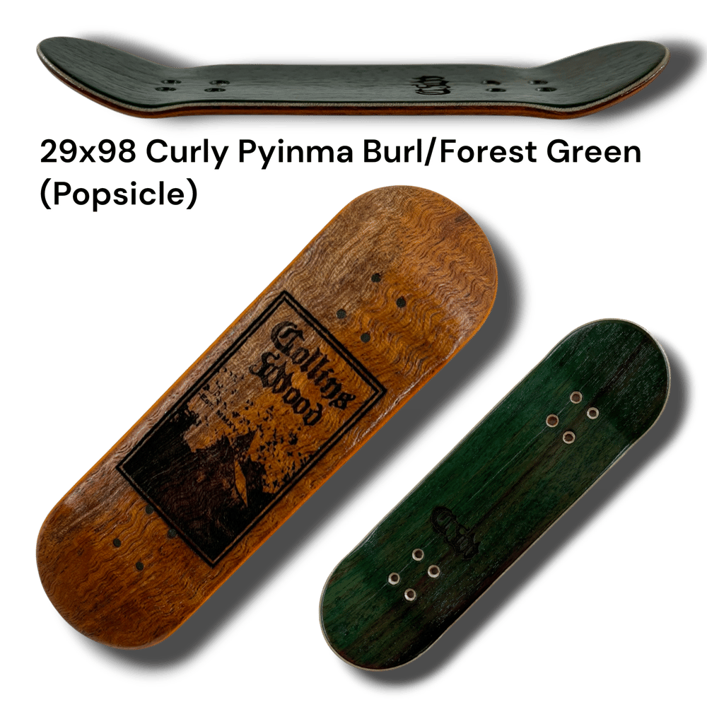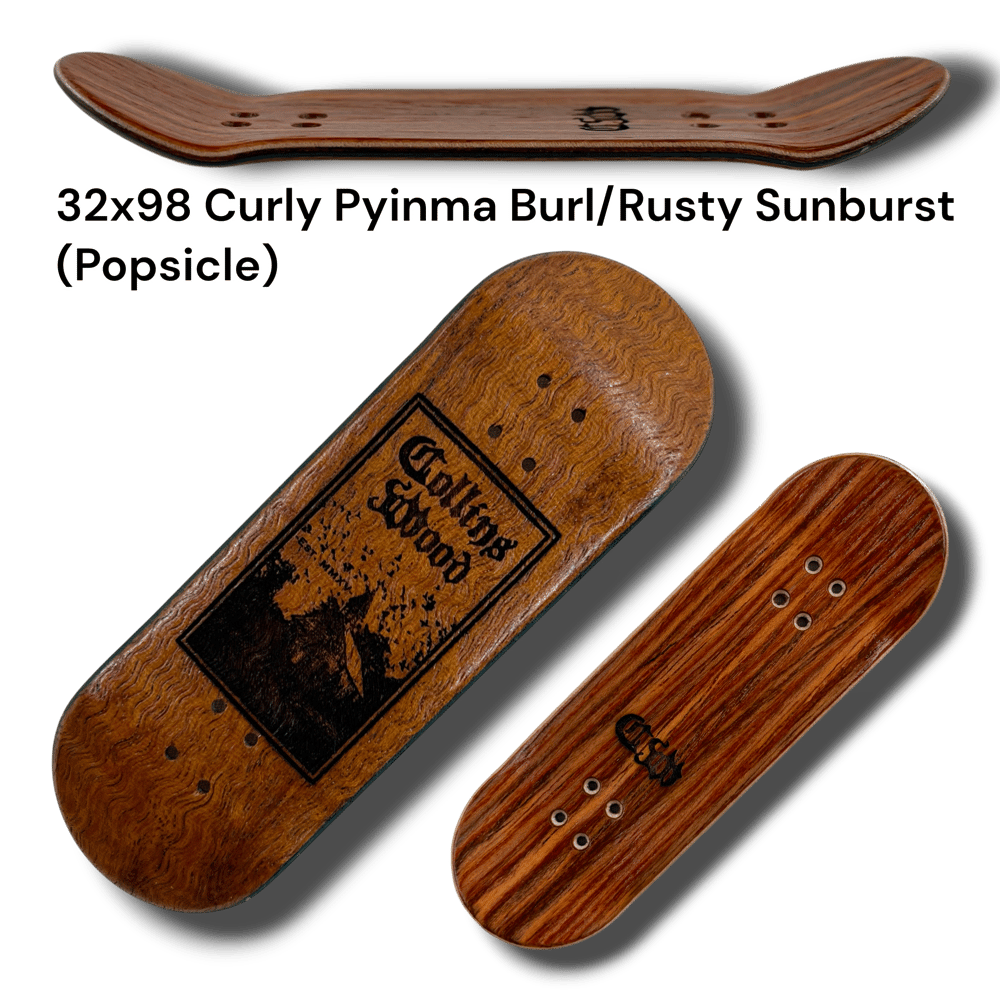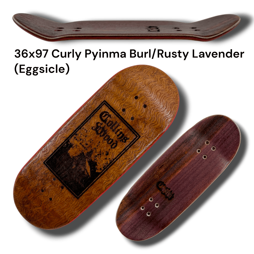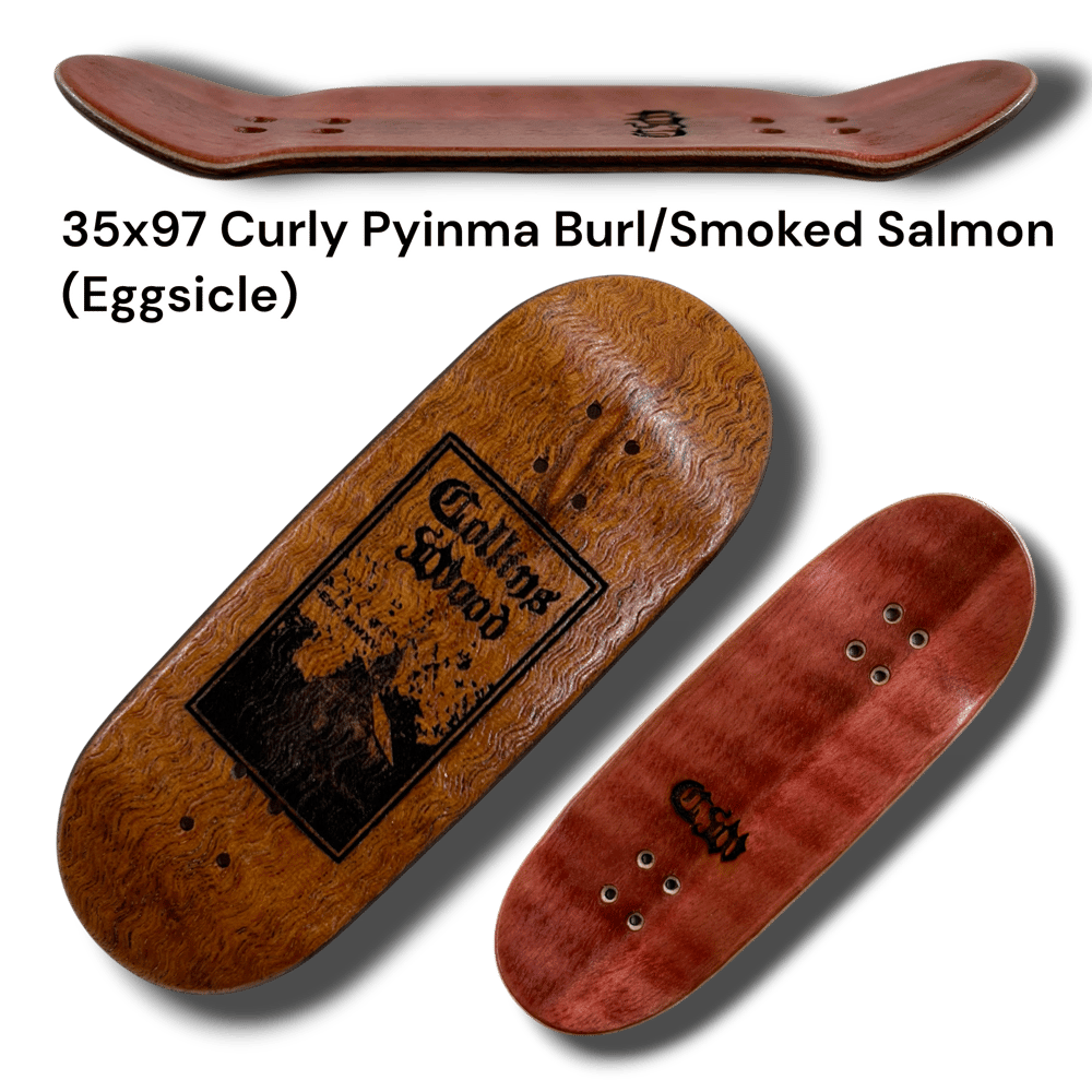 Introducing the first ever Collins Wood laser engraved "Southern Gothic" series. These are all from the classic tried and true CW mold. Now called the "Delta" mold. Wheelbase of 59mm. Mellow concave. Mid kicks. With an ever so slight raise in the nose. Each deck has a unique size, shape, and top ply color. Shape listed in (parentheses). Get yours while supplies last. Decks come with foam tape, stickers, and good luck mushroom charm.