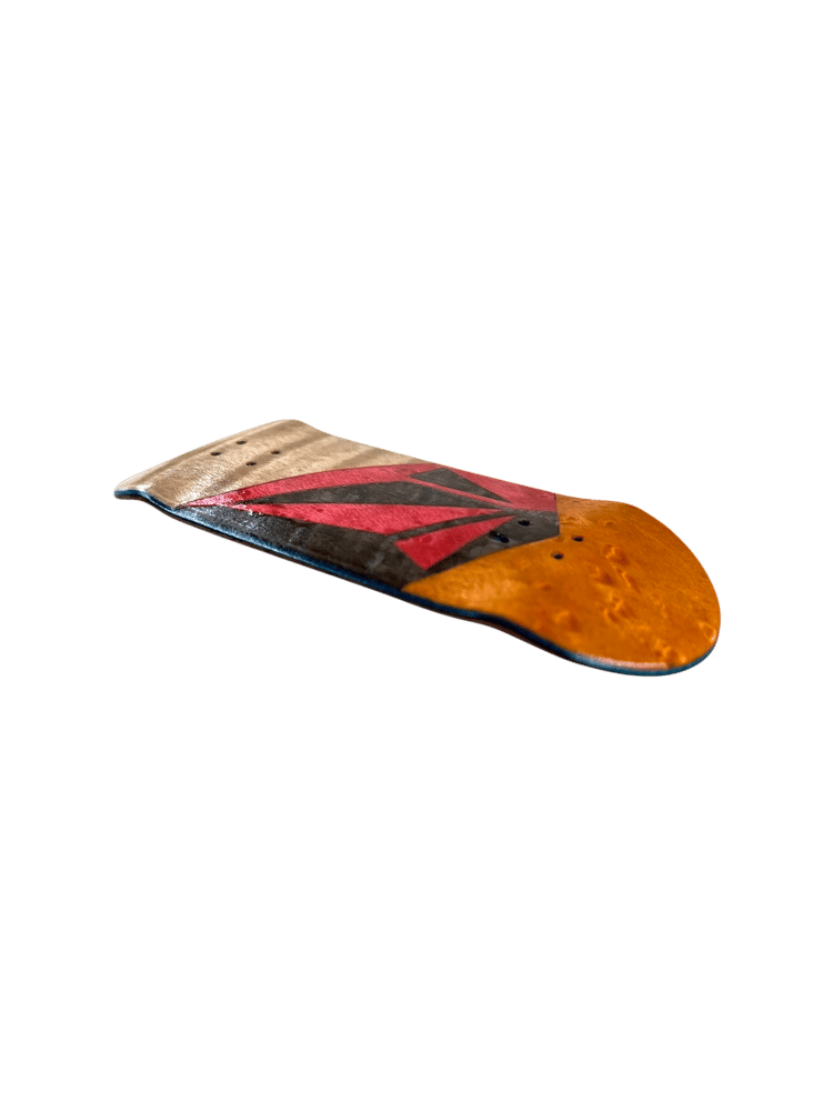 35mm x 98mm OG Popsicle “Stoned Split”. These decks are the result of a true passion for fine craftsmanship. All hand cut, with a hand burned and painted top ply, making each one of a kind. Collins Wood decks are not just art they’re made for performance as well. With a wheelbase of 59mm, low concave, and mid kicks with an ever so slight raise in the nose. Each deck comes with foam tape, stickers, a mushroom crystal, and a discount code on your next order. Quality guaranteed on each deck.