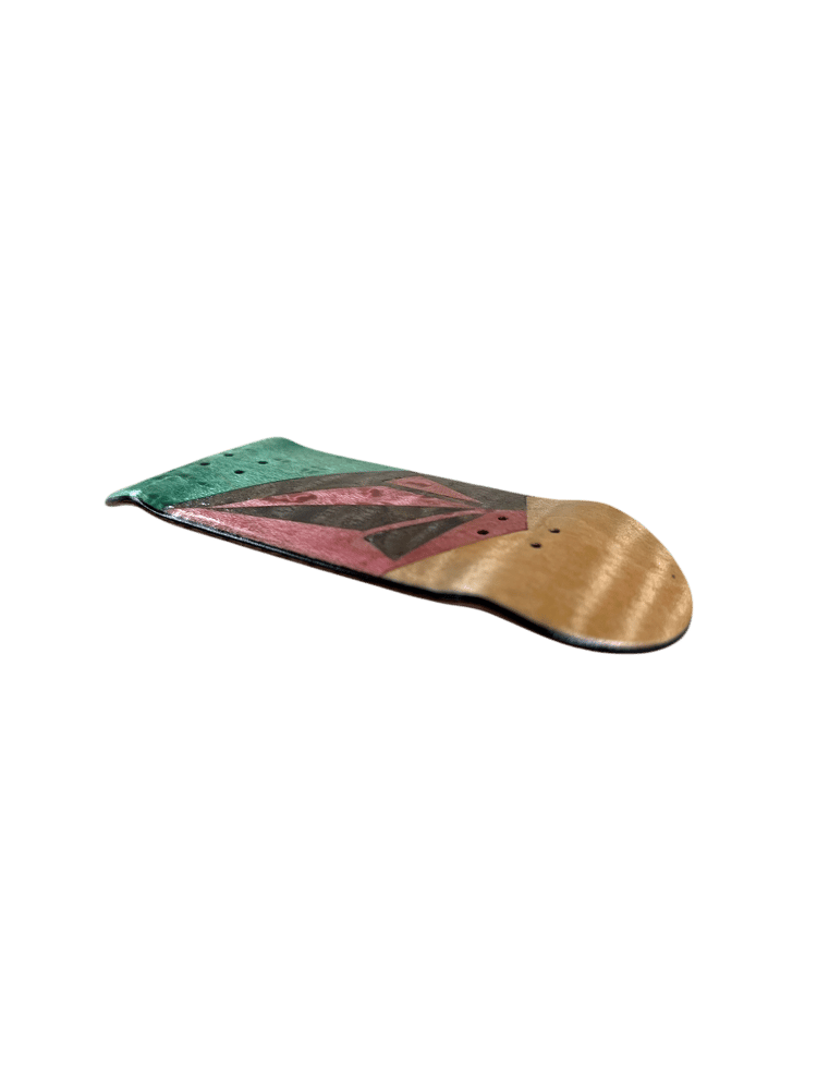35mm x 98mm OG Popsicle “Stoned Split”. These decks are the result of a true passion for fine craftsmanship. All hand cut, with a hand burned and painted top ply, making each one of a kind. Collins Wood decks are not just art they’re made for performance as well. With a wheelbase of 59mm, low concave, and mid kicks with an ever so slight raise in the nose. Each deck comes with foam tape, stickers, a mushroom crystal, and a discount code on your next order. Quality guaranteed on each deck.