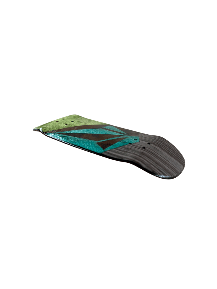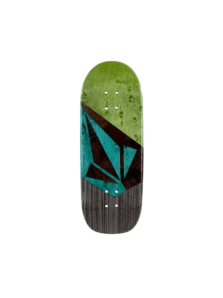 35mm x 97mm Tombstone “Stoned Split”. These decks are the result of a true passion for fine craftsmanship. All hand cut, with a hand burned and painted top ply, making each one of a kind. Collins Wood decks are not just art they’re made for performance as well. With a wheelbase of 59mm, low concave, and mid kicks with an ever so slight raise in the nose. Each deck comes with foam tape, stickers, a mushroom crystal, and a discount code on your next order. Quality guaranteed on each deck.