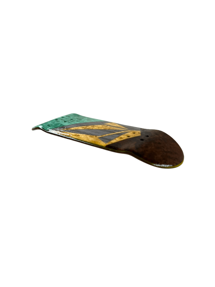 31.5mm x 98mm OG Popsicle “Stoned Split”. These decks are the result of a true passion for fine craftsmanship. All hand cut, with a hand burned and painted top ply, making each one of a kind. Collins Wood decks are not just art they’re made for performance as well. With a wheelbase of 59mm, low concave, and mid kicks with an ever so slight raise in the nose. Each deck comes with foam tape, stickers, a mushroom crystal, and a discount code on your next order. Quality guaranteed on each deck.